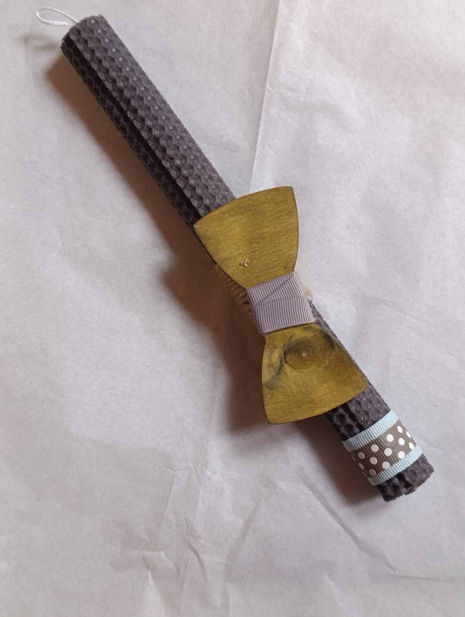 Λαμπάδα κηρήθρας με φυσικό άρωμα μελισσοκέρι σε χακί χρώμα με ξύλινο διακοσμητικό στοιχείο παπιγιον !!