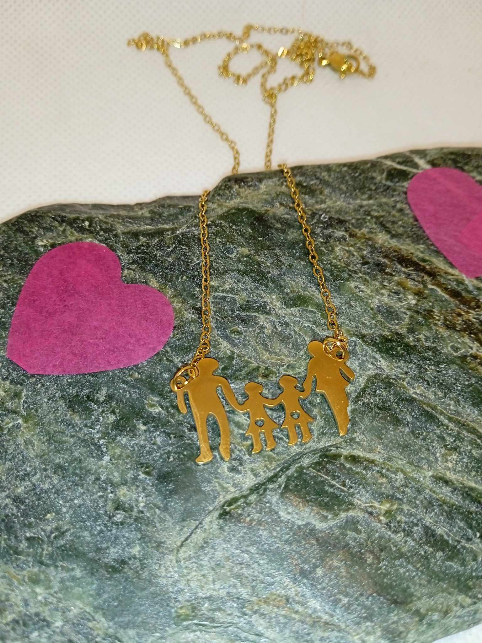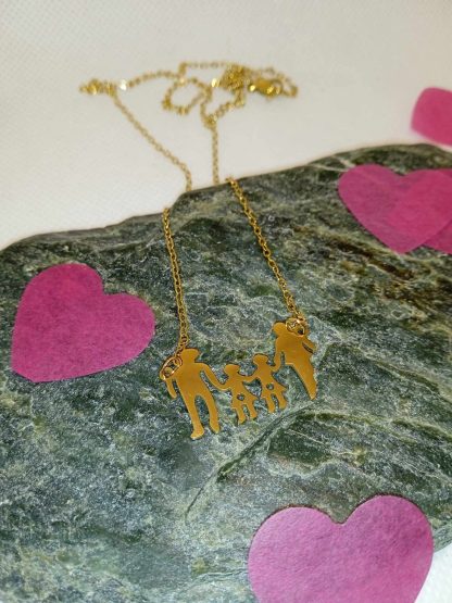 Ατσάλινο κολιέ σε χρυσή λεπτή αλυσίδα με οικογένεια μπαμπάς-μάμα με δυο κοριτσάκια.