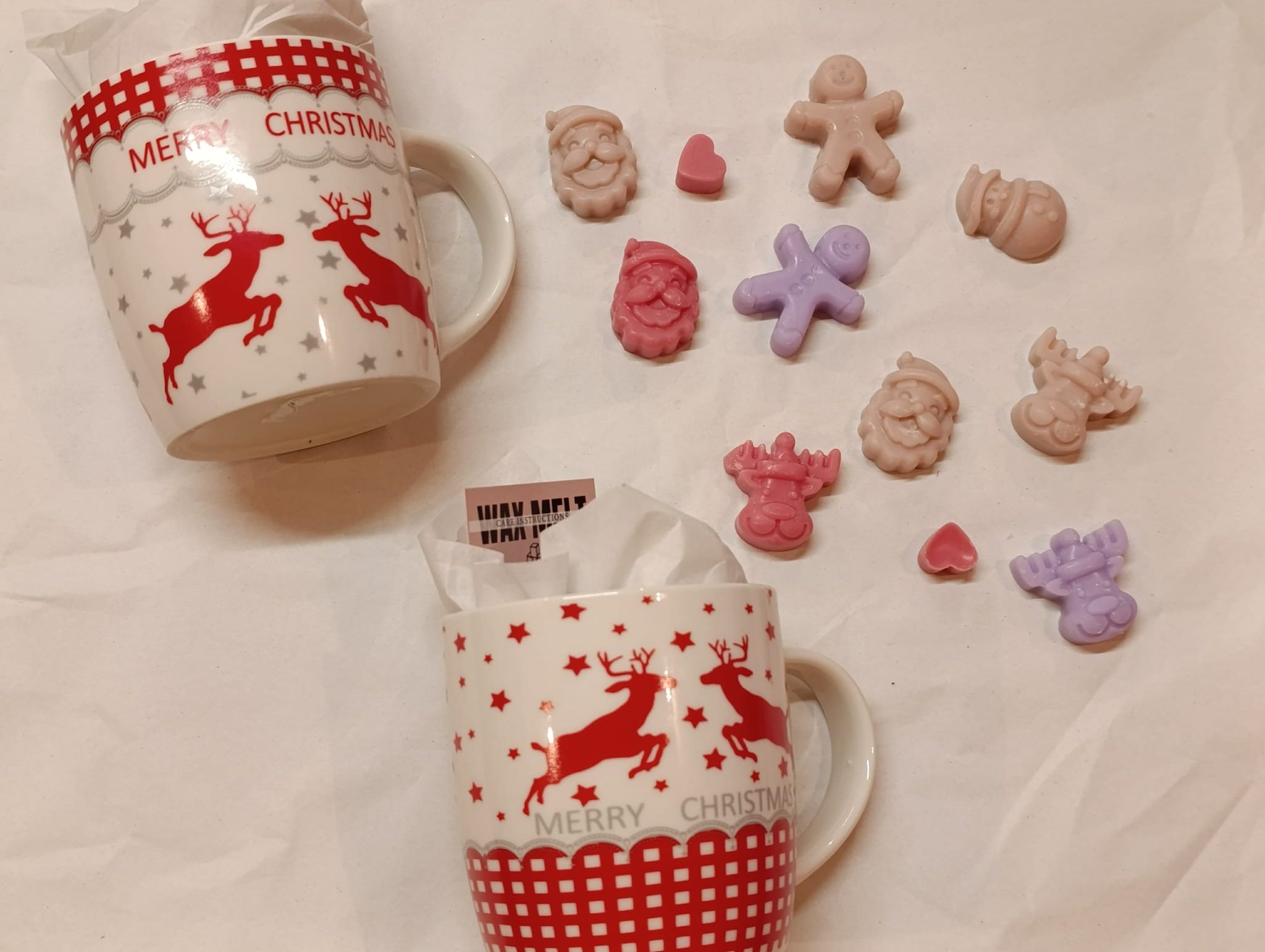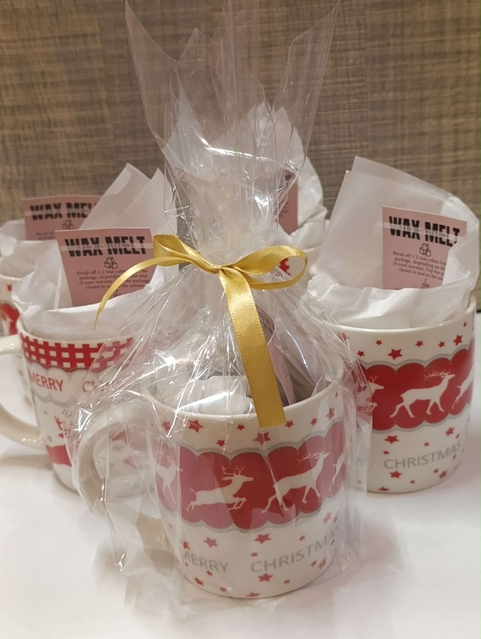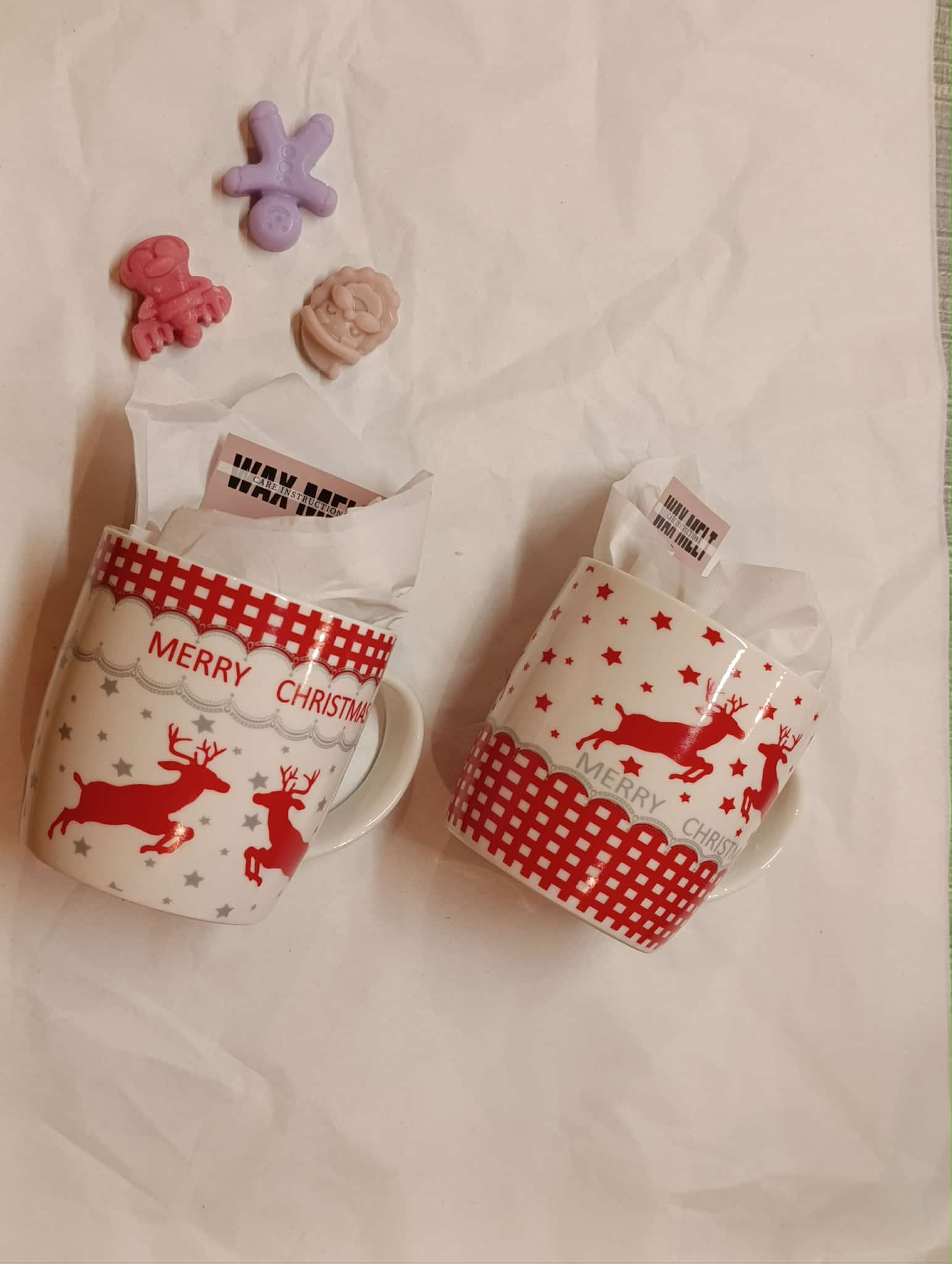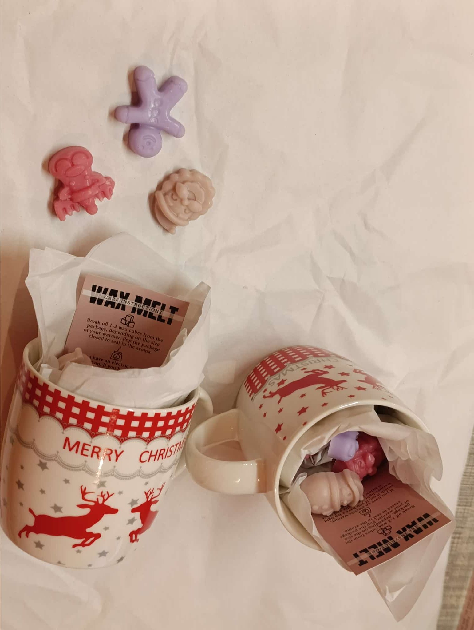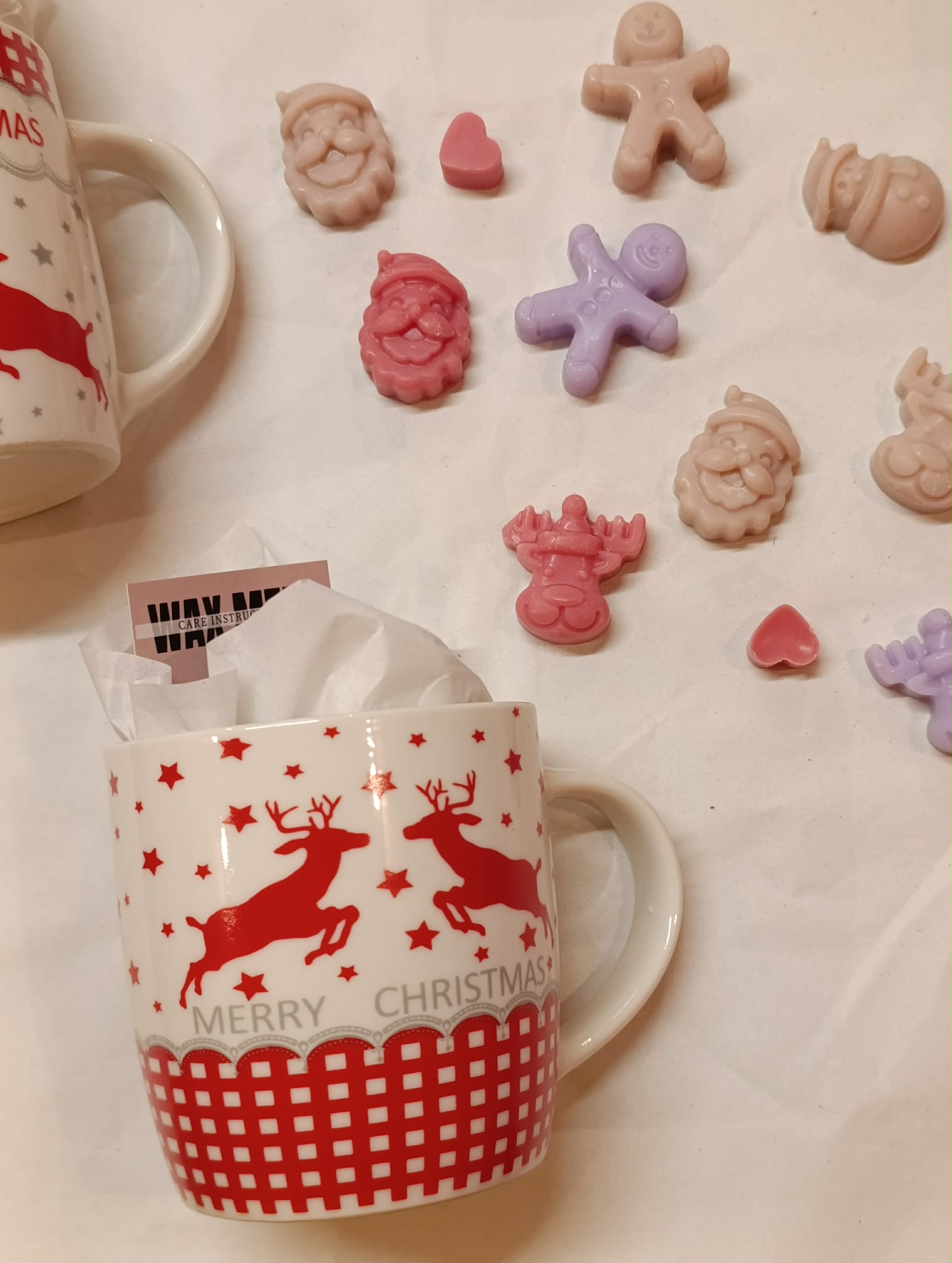 Xριστουγεννιάτικη κούπα με ταρανδάκια γεμισμένη με τα πιο γιορτινά wax melts σε μιξ αρώματα όπως Salted caramel, μελομακάρονο, Amber and olibanum, pumpkin souffle ή gingerbread caramel mousse.