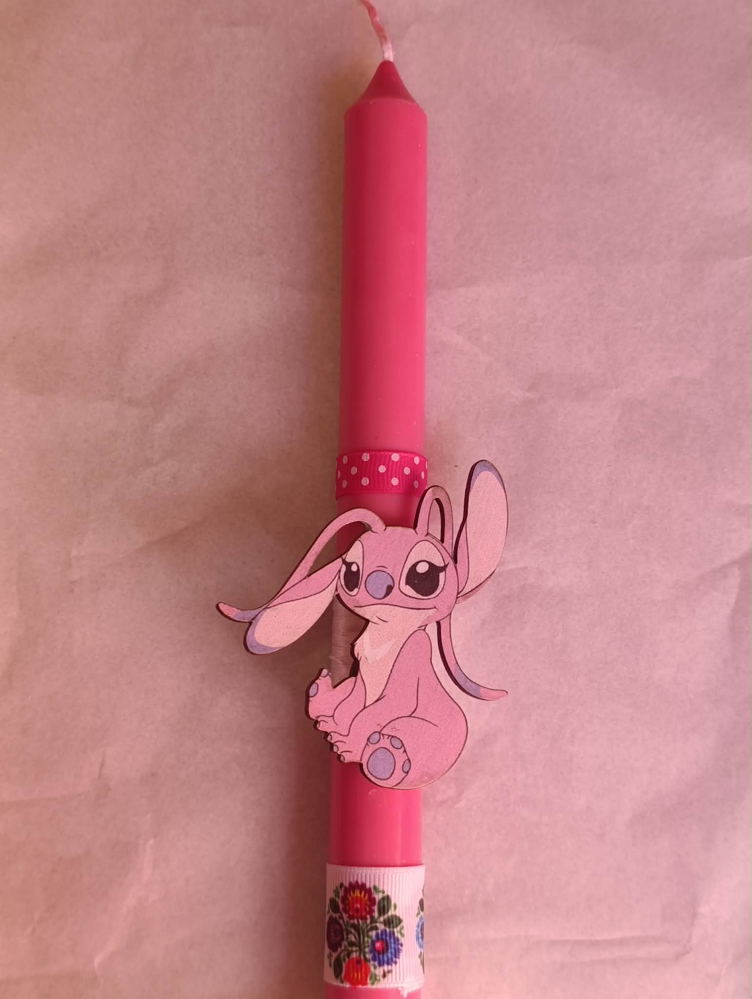 Πασχαλινή χειροποίητη Λαμπάδα με μαγνητάκι Angel από το αγαπημένο παιδικό των μικρών και μεγάλων φίλων Lilo and Stitch.