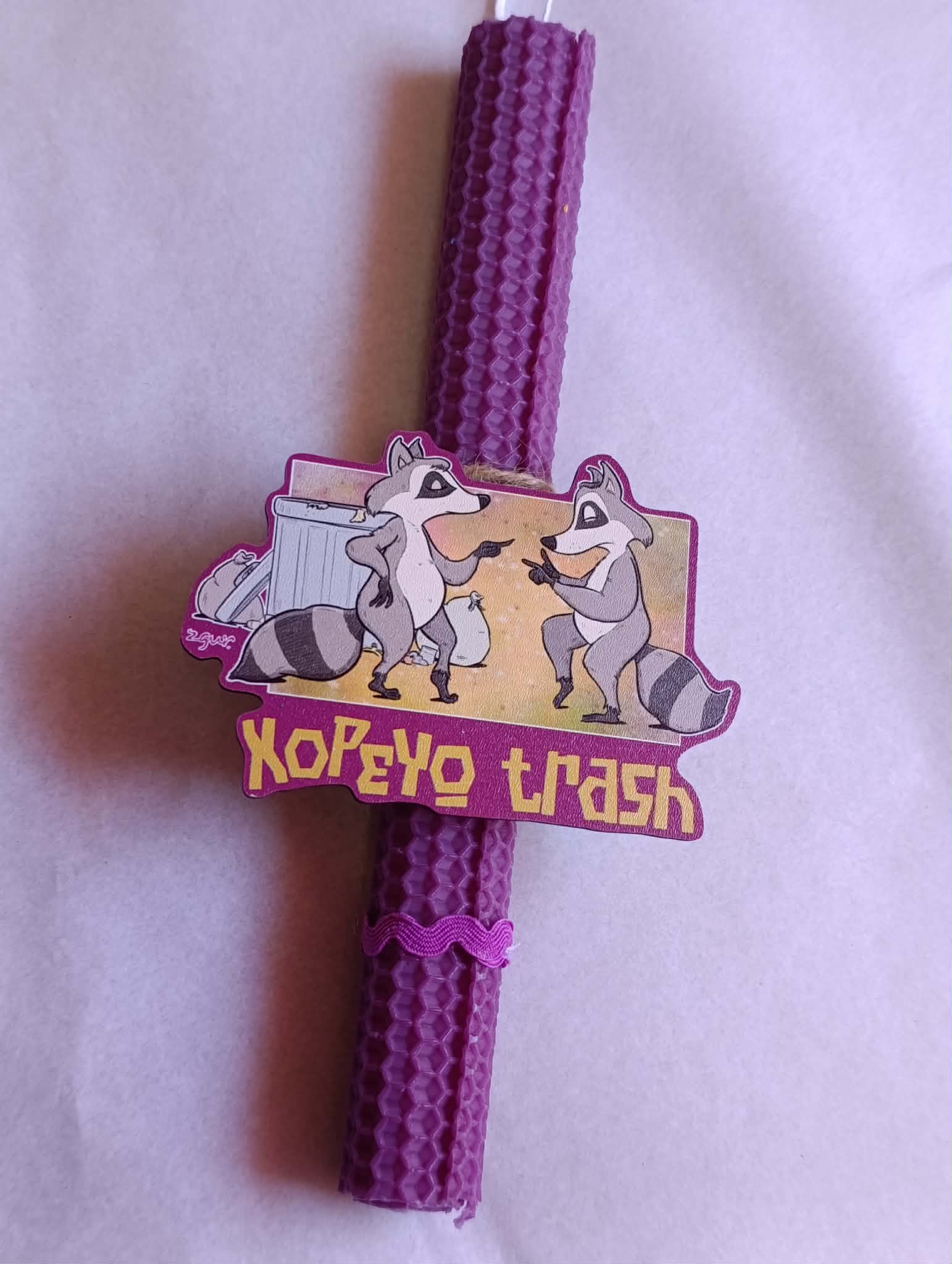 Χειροποίητη Λαμπάδα “Xopeyo Trash” – Raccoon Edition