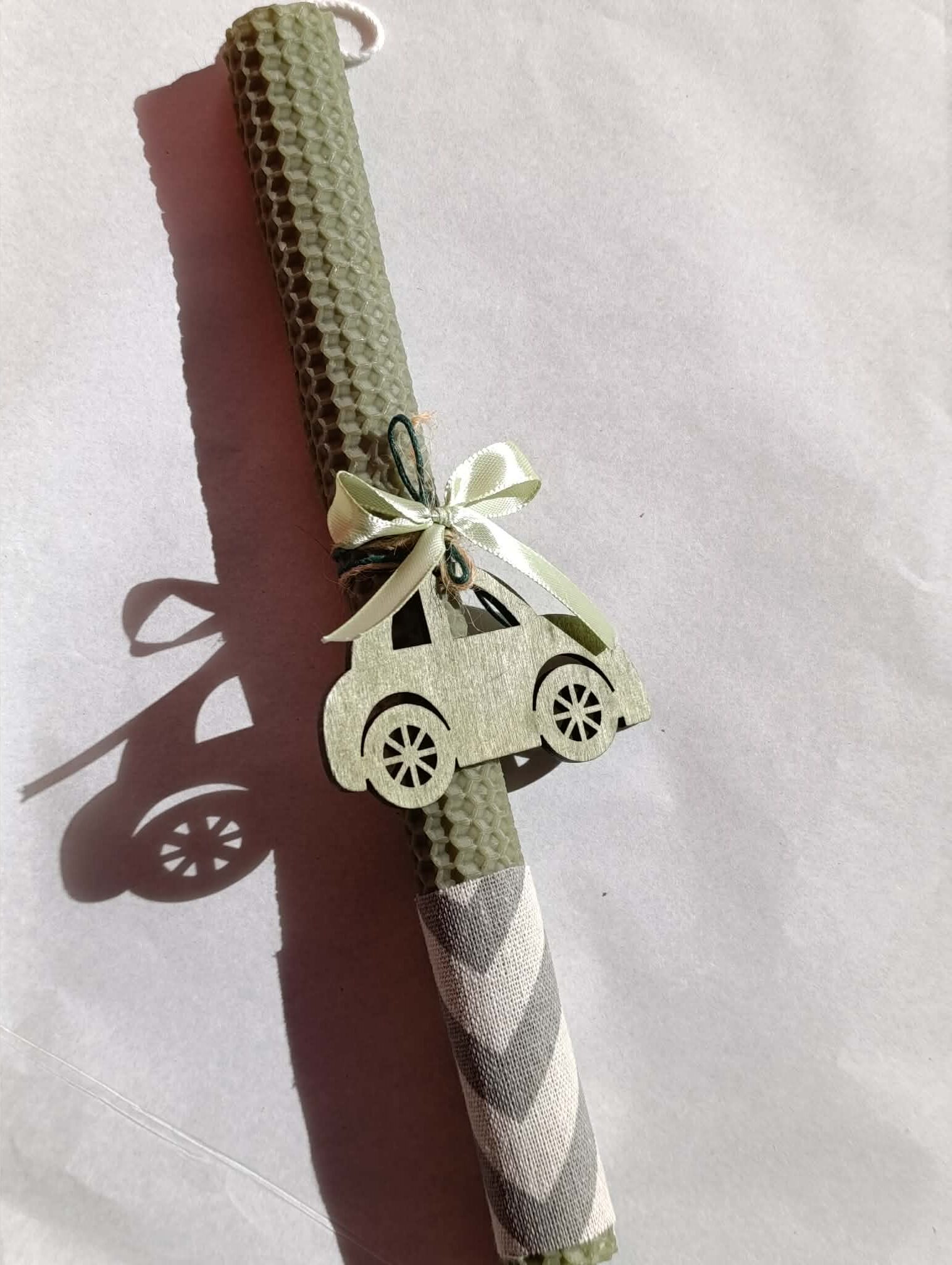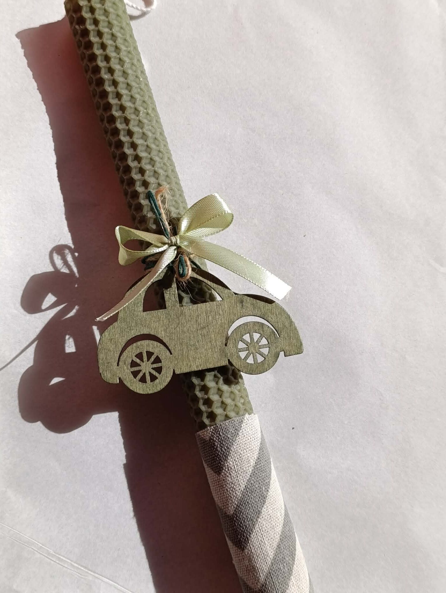Πασχαλινή  λαμπάδα κηρήθρας  αυτοκινητάκι σε χακί χρώμα!!